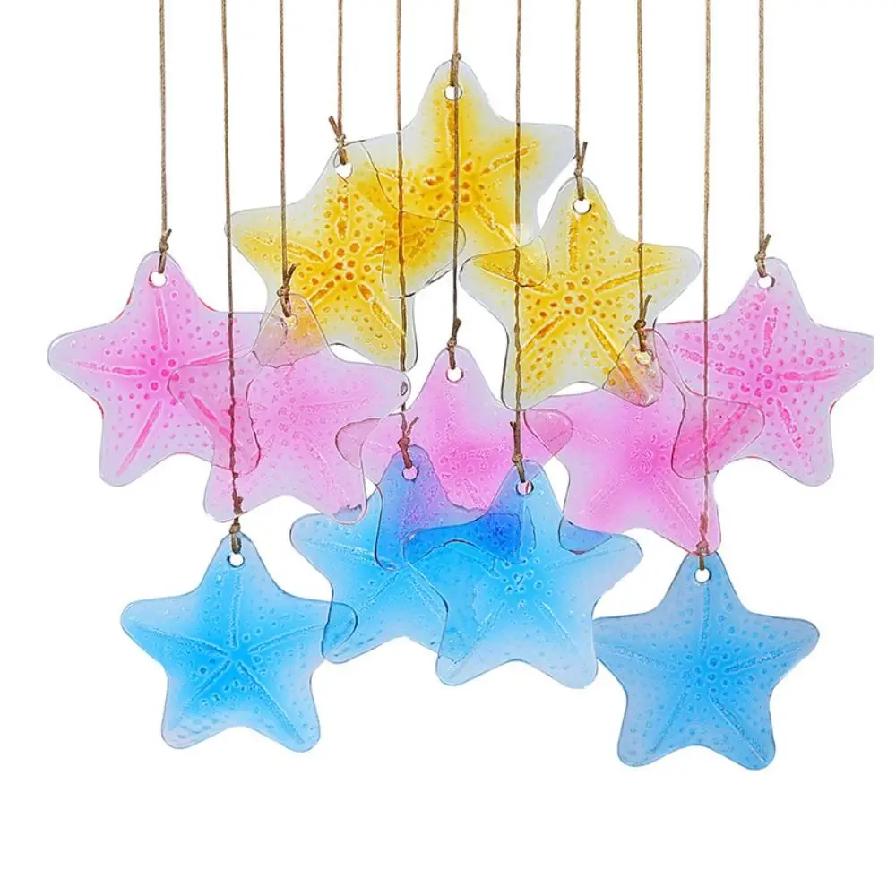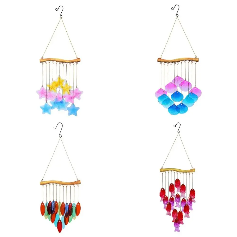 Creative Fish Shaped Wind Chime Shell Crafts Colored Glass Wind Chime Exquisite Iron Art Light Collection Pendant Outdoor