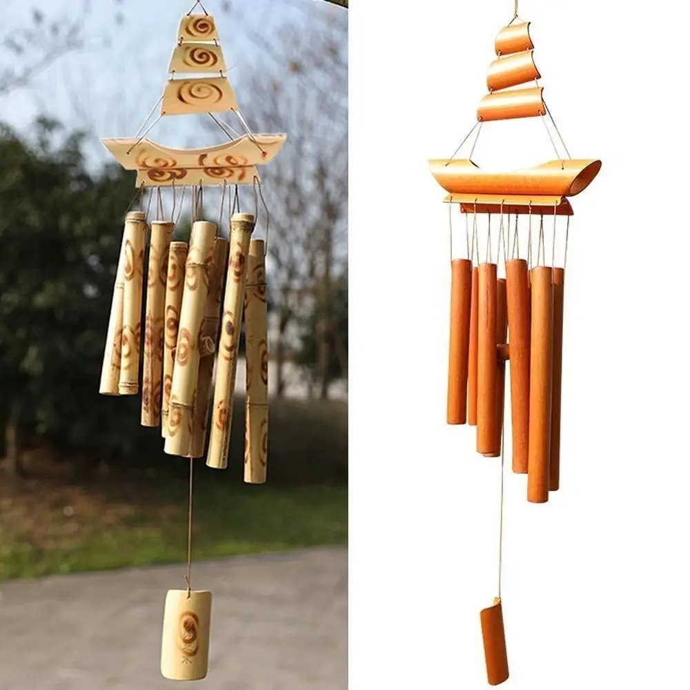 New Bamboo Bamboo Wind Chimes Hanging Ornament Pendant Bell Wall Hanging Windchimes Crafts Gift Handmade Wind Chime Home Garden