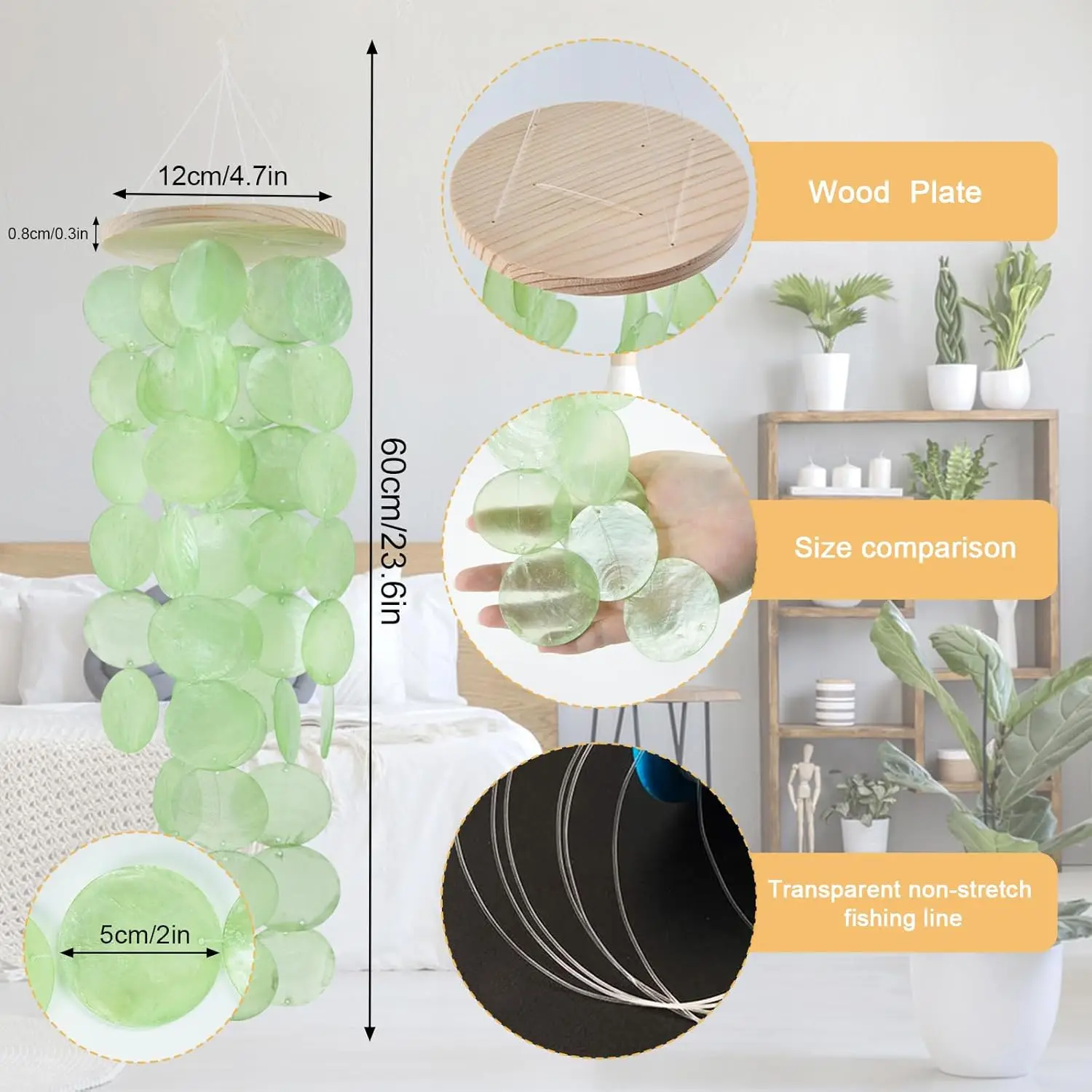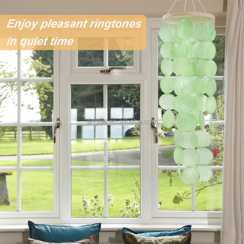 Wind Chimes for Outside, Handcrafted Green Capiz Shells Windchime Coastal Style Decor for Indoor/Outdoors